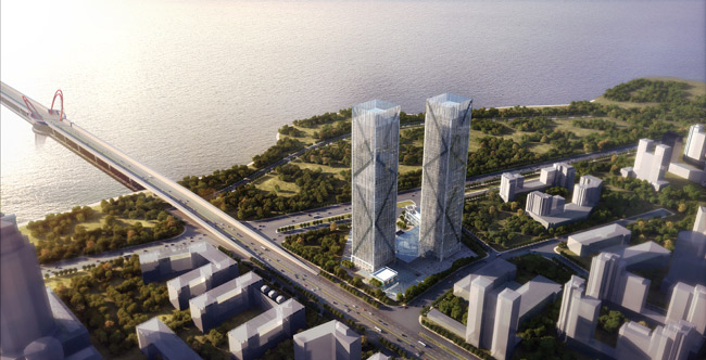 住宅與寫字樓一體的商務(wù)綜合體,總建筑面積約19萬平方米,由兩棟塔樓主體加四層地下室連體組成,主樓高220米,地上60層,地下4層,是南昌地下層數(shù)最多的大樓。項(xiàng)目采用方鋼管混凝土柱—鋼梁—混凝土核心筒的混合結(jié)構(gòu)。
